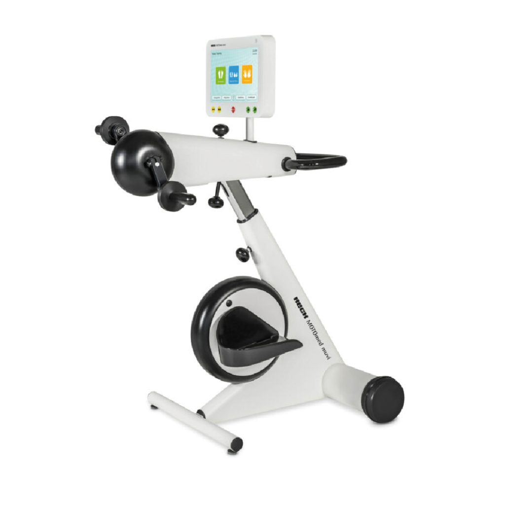 El movimiendo MOTOmed es una forma de terapia basada en el ciclismo que permite movimiento pasiva, asistida y activa desde la cama, camilla, silla de rueda o silla.
