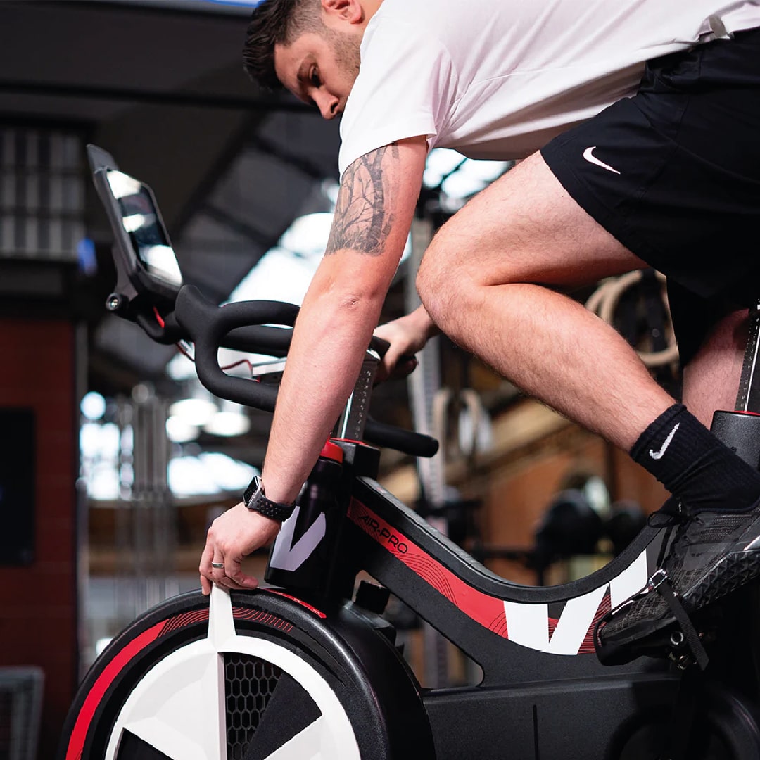 Wattbike Air-Pro es la bicicleta estática más realista, robusta y alto rendimiento, equipada para entregar el mejor entrenamiento intensivo en interiores con doble resistencia de frenado aéreo y magnético para los entrenamientos más duros como HIIT y entrenamientos explosivos, pero lo suficientemente delicado para rehabilitación y recuperación.