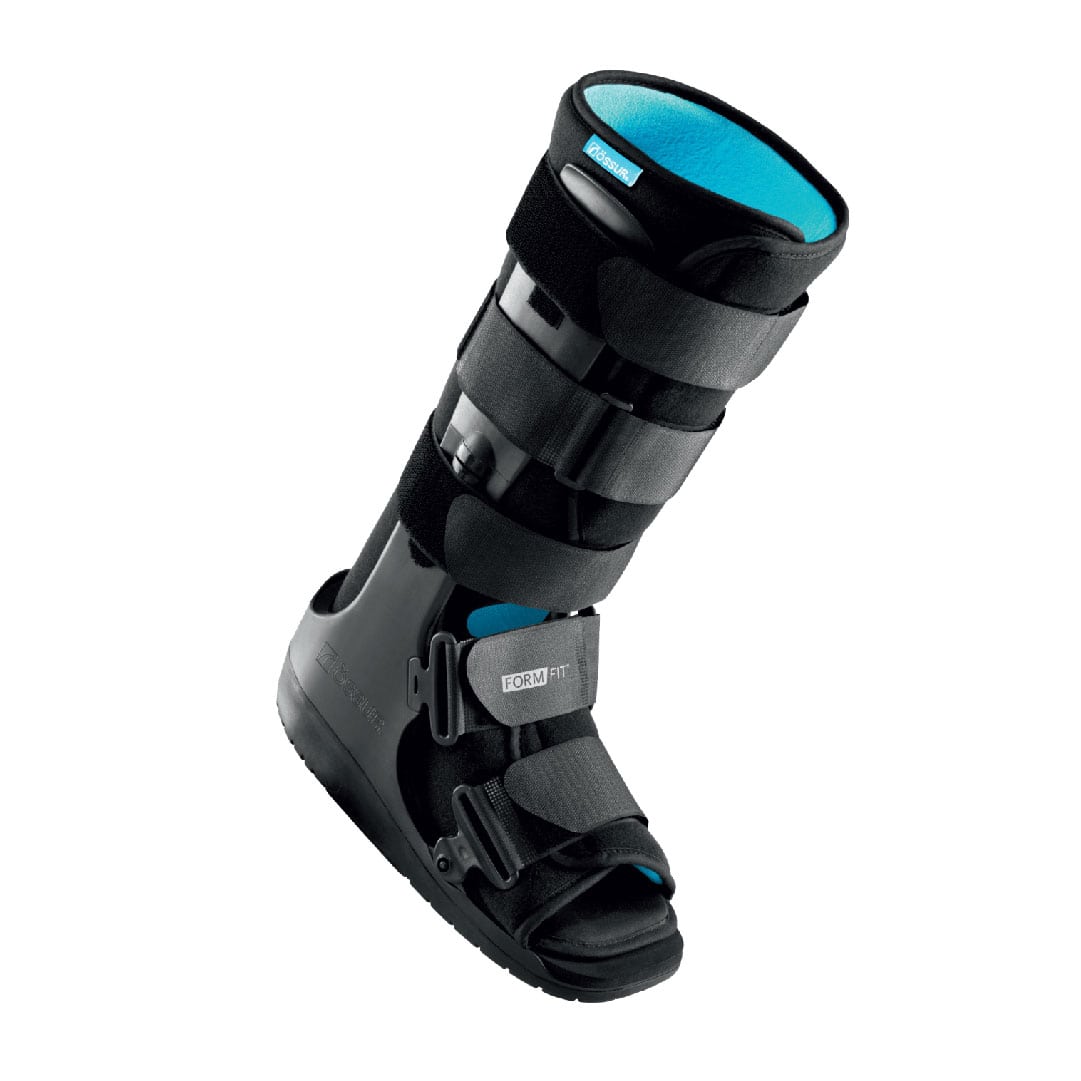 Inmovilizador de pie y tobillo de materiales ligeros, transpirables y de función superior que el yeso, absorbiendo y reduciendo el impacto del talón proporcionando una marcha cómoda, natural y estable con diseño anatómico antideslizante.