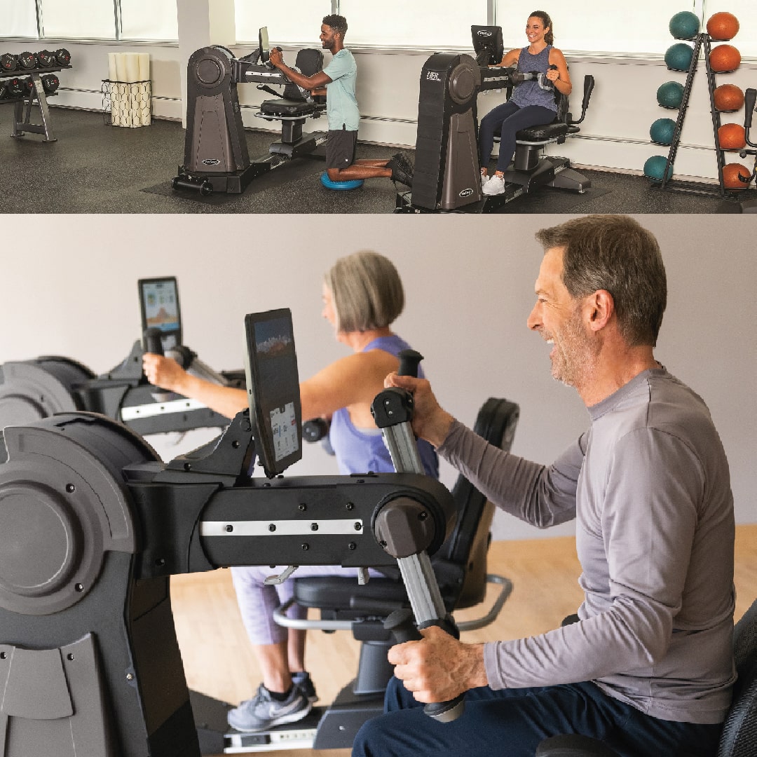 | Pantalla táctil dual HD | Fácil de leer y usar, muestra métricas clave en tiempo real como nivel de resistencia, duración del ejercicio, número de repeticiones y progreso. |