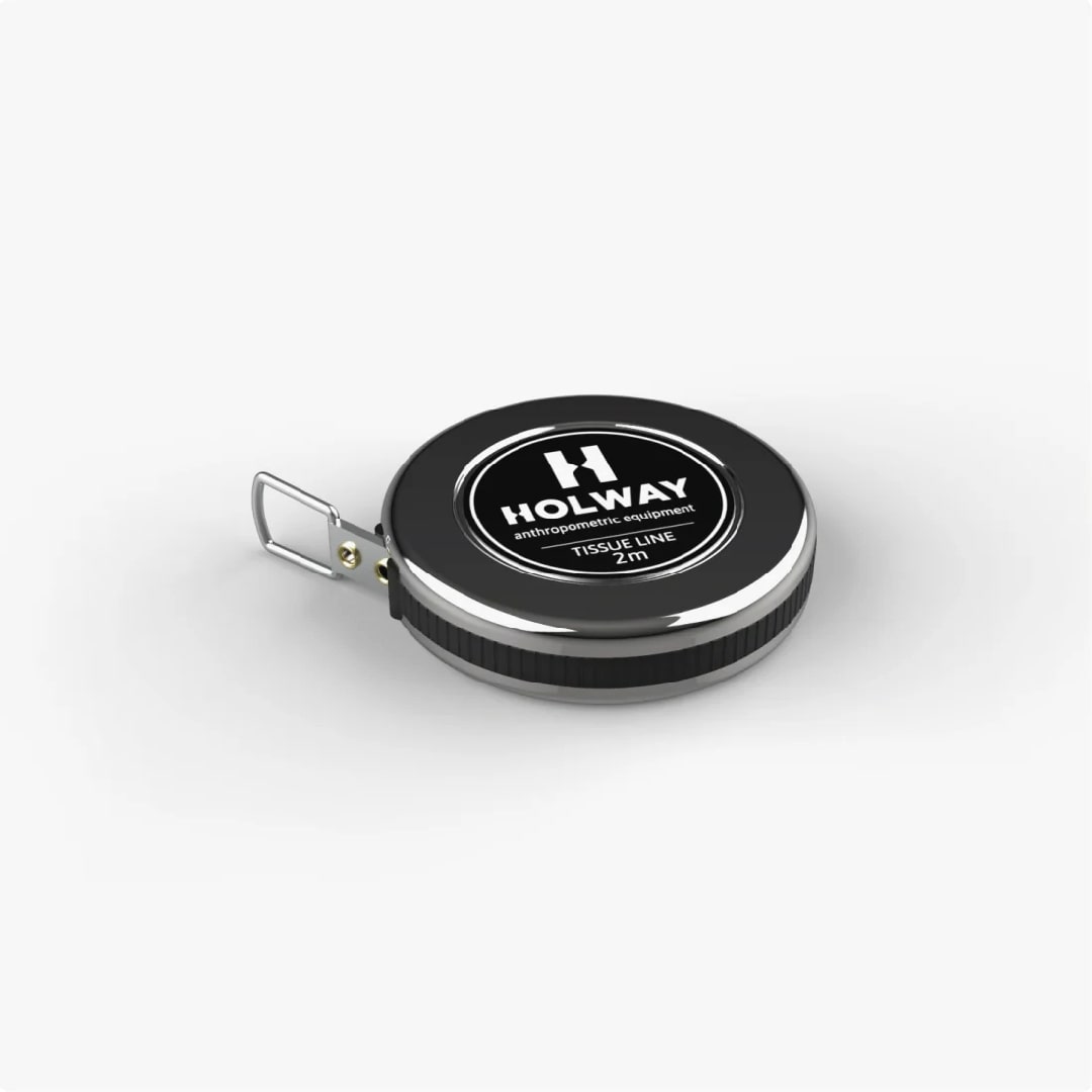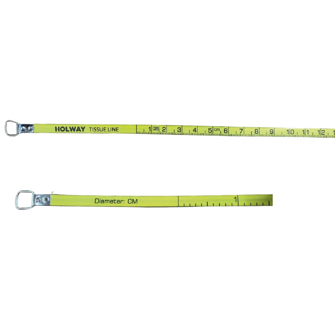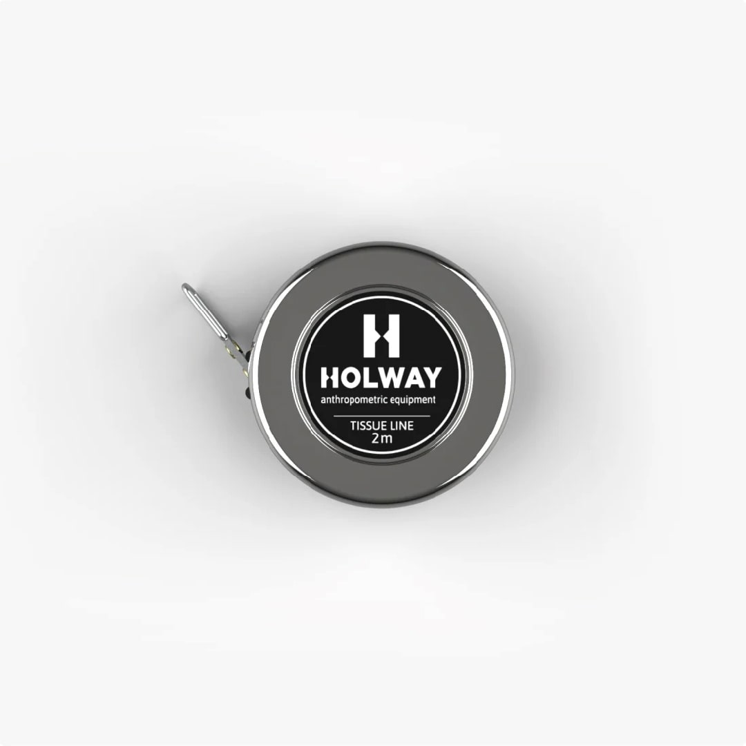 Cinta métrica antropométrica marca Holway de 2 metros de largo con números negros sobre un fondo barnizado amarillo en contraste. Resolución de 1,0 mm.
