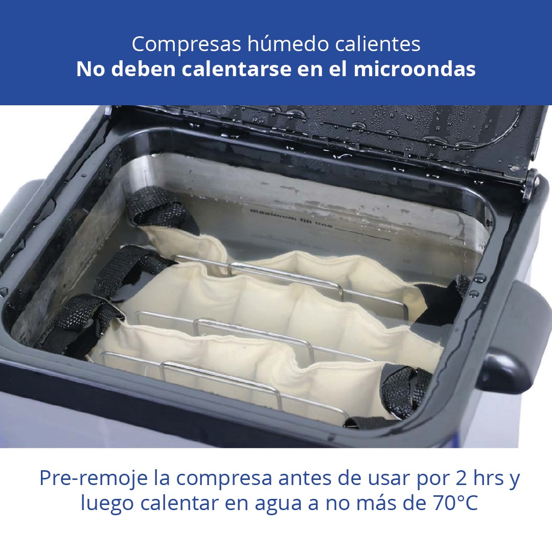 Compresas húmedo calientes que proporciona calor parejo durante 30 minutos de hasta 70 grados centígrados por vapor/humedad y pueden ser usadas en diversos tipos de tratamientos térmicos.