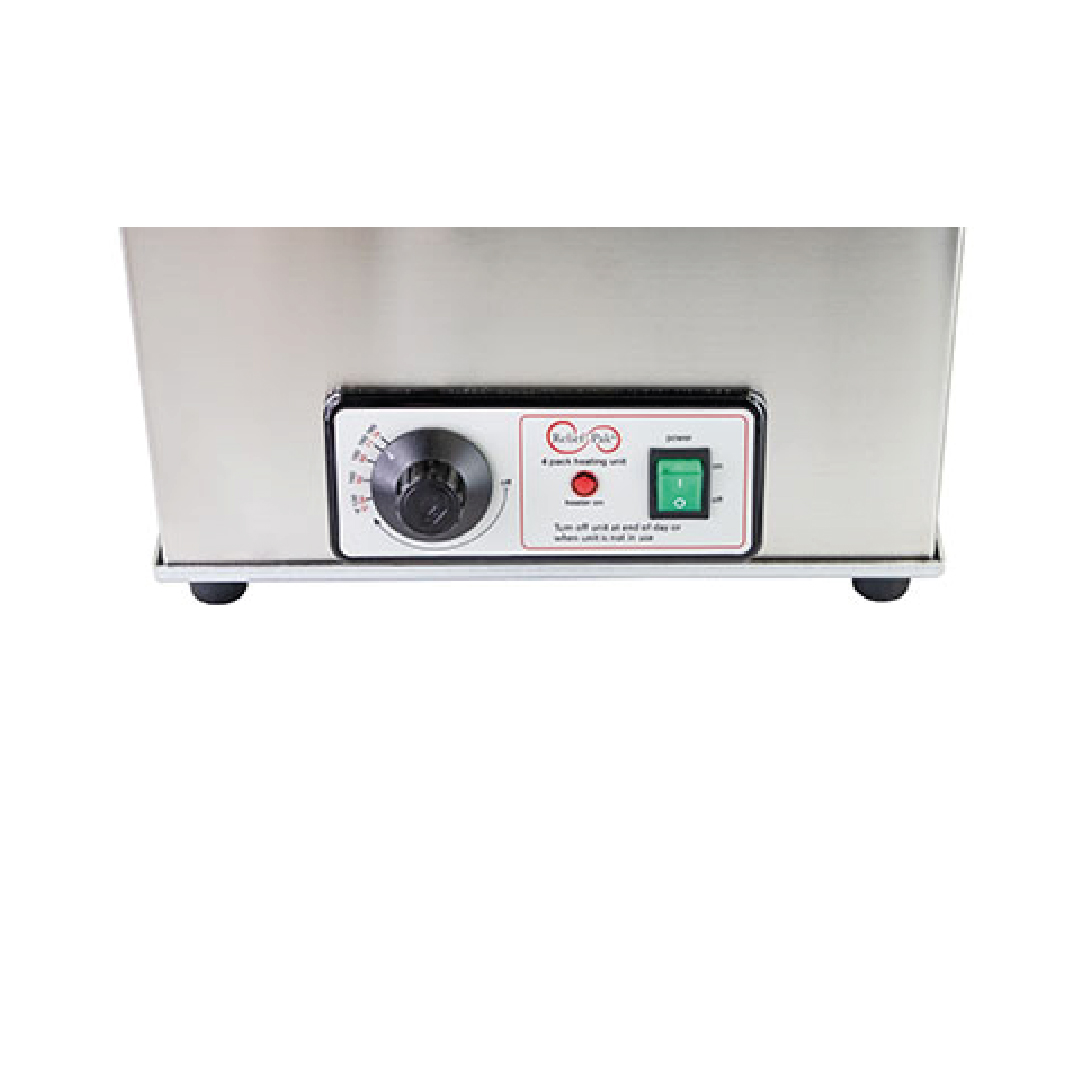 Compresero caliente 4 unidades Relief Pak de tapa de acero inoxidable tiene capacidad para almacenar y calentar 4 compresas húmedas hasta 160 grados en un baño de agua caliente aislado. El calor húmedo y las compresas húmedas ayudan a tratar el dolor agudo y crónico, aliviar las molestias y la rigidez.