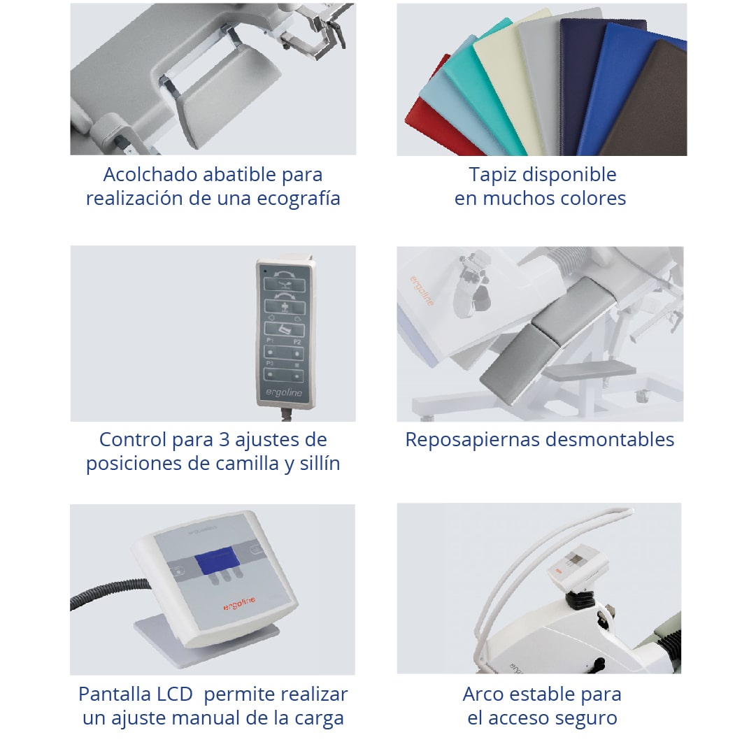 La pieza acolchada abatible facilita la realización de ecografías.