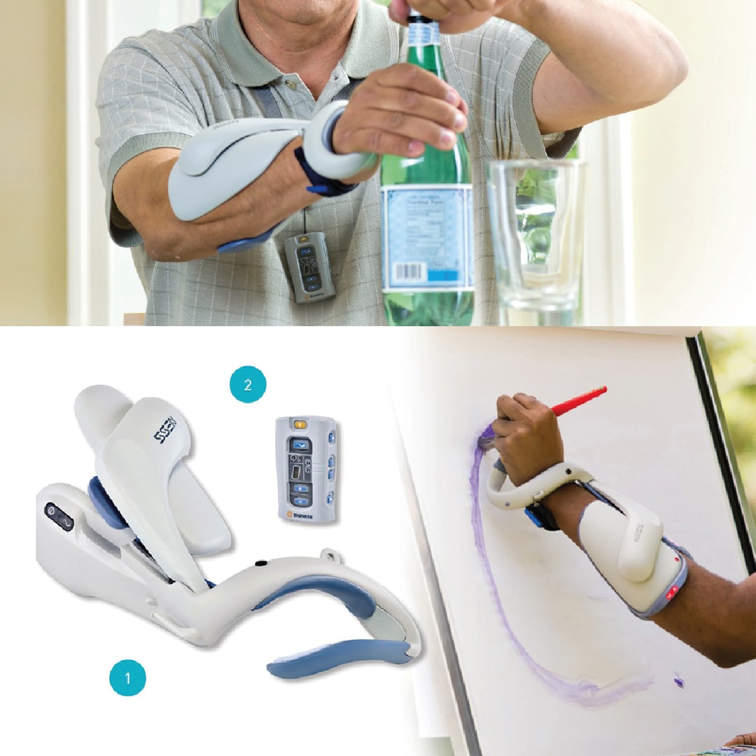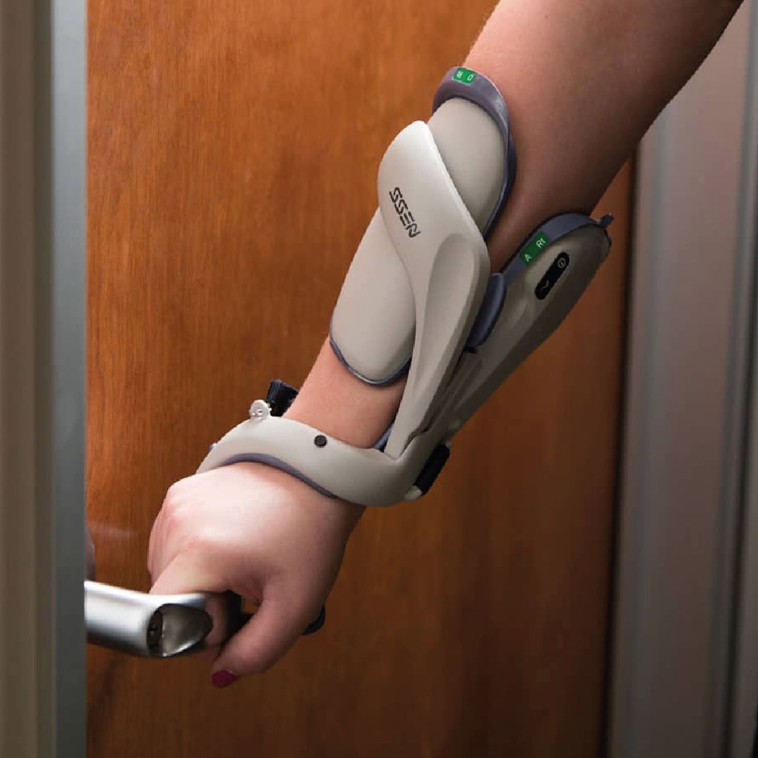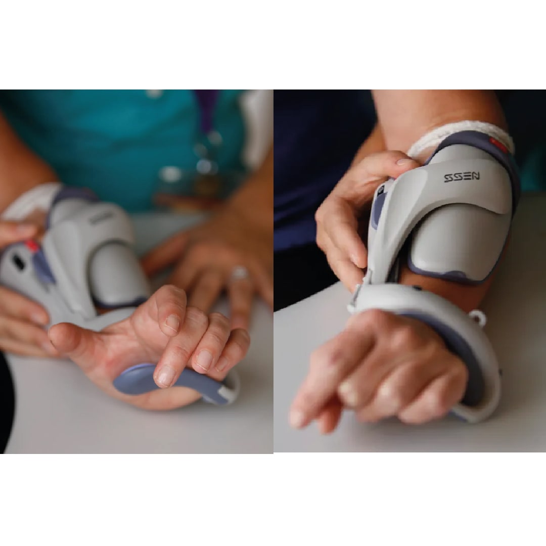 Solución inalámbrica de estimulación funcional (FES) H200 diseñada para la rehabilitación de la mano. Este dispositivo mantiene la muñeca en una posición funcional óptima, permitiendo que los dedos y el pulgar se muevan de manera eficiente para realizar movimientos esenciales como alcanzar, agarrar y pellizcar.