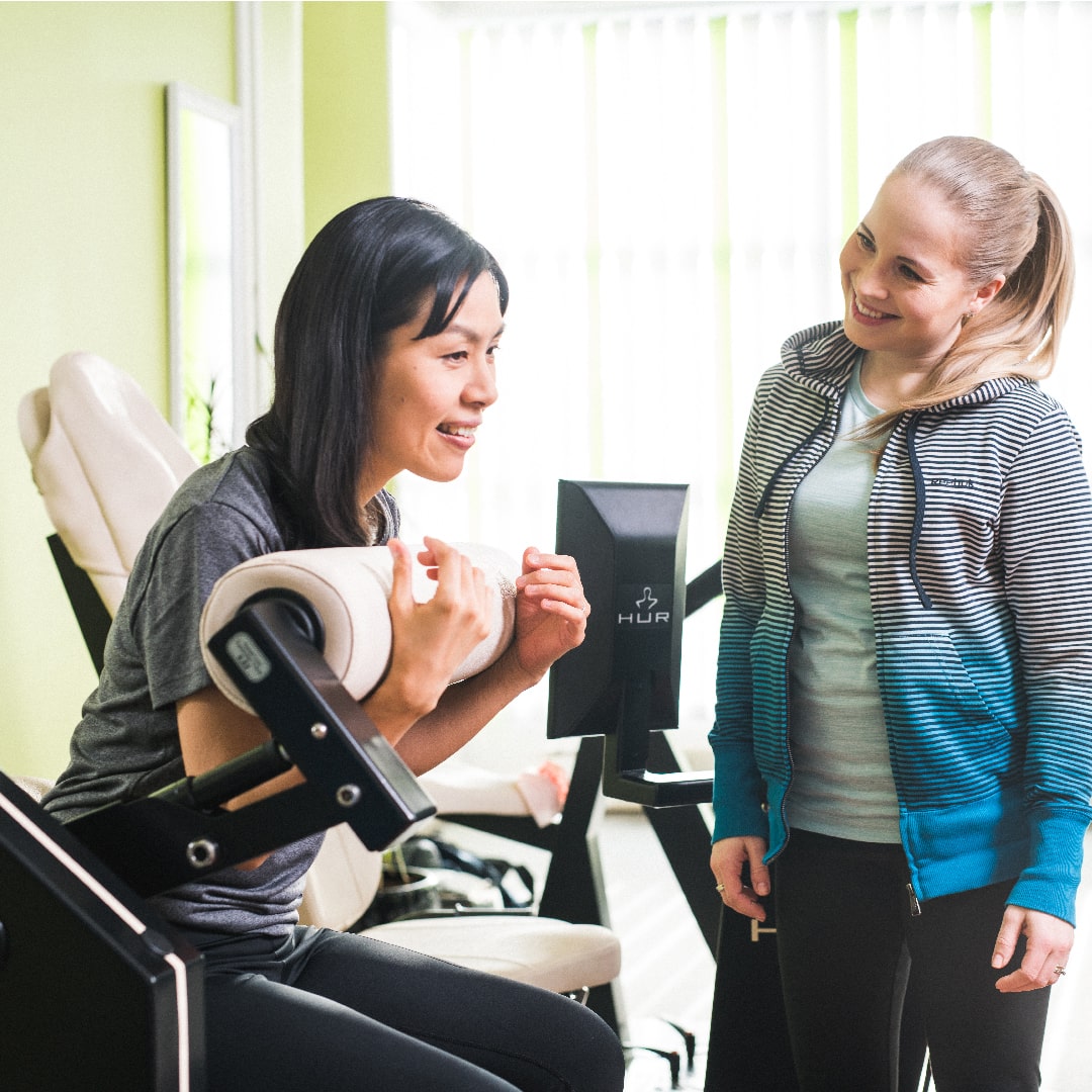 Conector de prueba isométrica: Conecte fácilmente el accesorio HUR Performance Recorder (9200) en el conector de prueba isométrica de la máquina para medir medidas isométricas, como la fuerza máxima y el equilibrio muscular. |