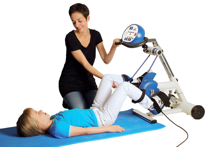 Movilizador pasivo, activo y asistido eléctricamente, MOTOmed gracile 12 desarrollado especialmente para niños para terapias de movimiento precoz infantil, en pacientes con enfermedades neurológicas y neuromusculares desde los 5 años. Utilizado por distintos profesionales, como kinesiólogos, terapeutas, fisiatras, entre otros.