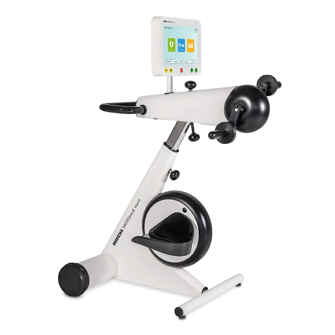 Al igual que una bicicleta con un motor auxiliar, la función MOTOmed Servo-pedaleo (entrenamiento de piernas) o Servo-giro (entrenamiento de brazos) ayuda al usuario a realizar movimientos activos. Esta función permite a la persona realizar un movimiento activo incluso con la mínima fuerza personal. La fuerza muscular residual puede reconocerse y desarrollarse sin un esfuerzo excesivo. |