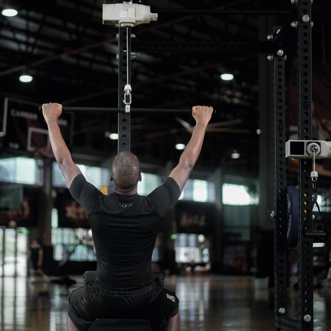 •  Potencia máxima, cero cables sueltos: se monta en racks, paredes o trípodes. Usa un motor de accionamiento directo con resistencia de 5–90 kg  y no necesita correa ni poleas mecánicas.