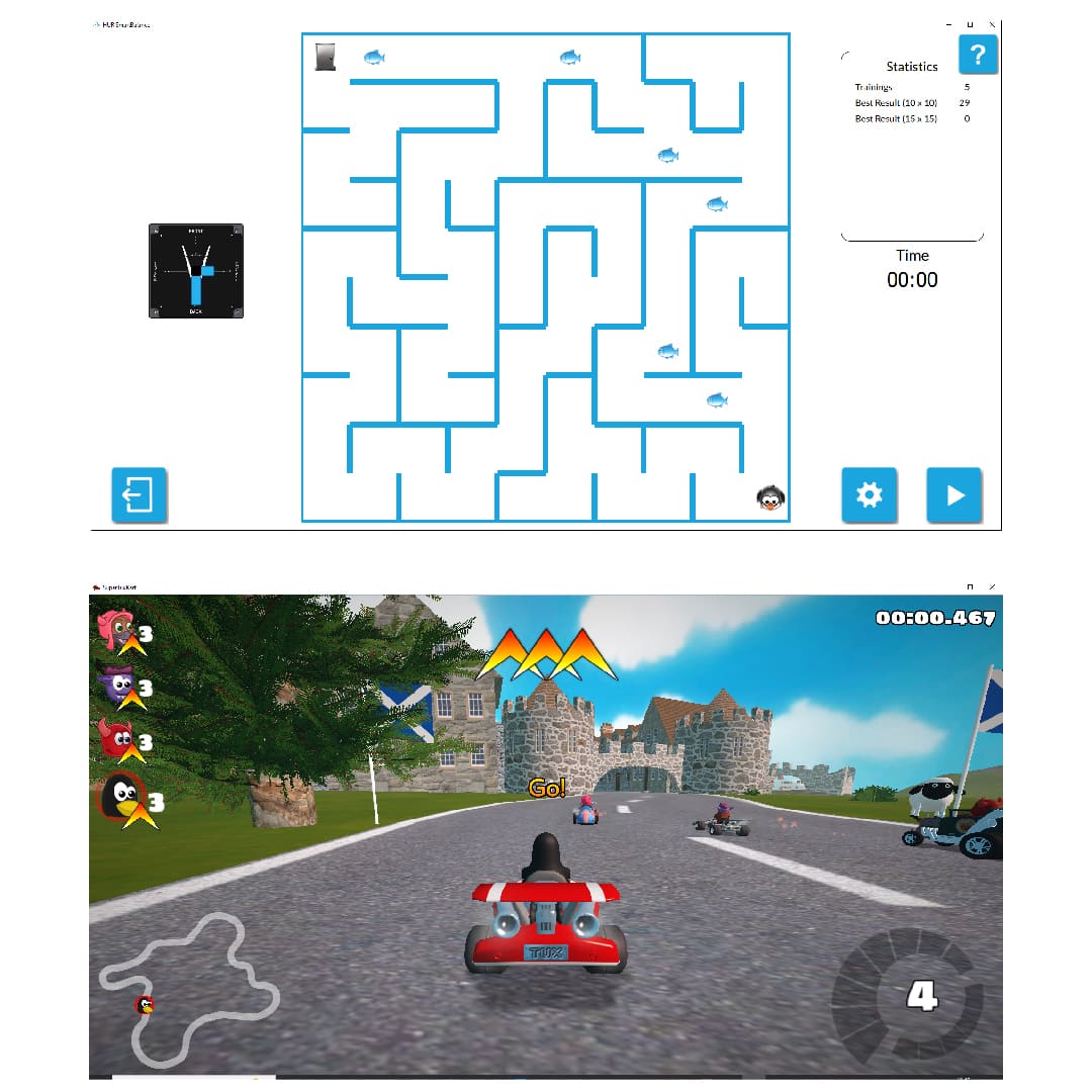 | Variedad de juegos | laberintos, tenis, cartas con N-Back Test, control de impulso con Stop Signal Task, carreras con Tux Kart. |