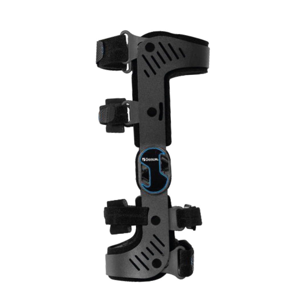 Rodillera Rebound Dual ST Ossür de doble soporte lateral, fabricada en aluminio moldeable en frío para un ajuste anatómico y estable.