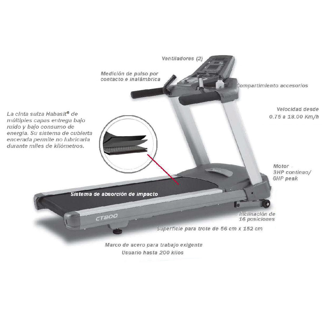 | Programas | 10 (Manual, Hill-Fat burn-Cardio-5K Run-Interval, Fit Test (Gerkin protocol), Usuario y Control Pulso (HR Control) según peso/edad de usuario. |